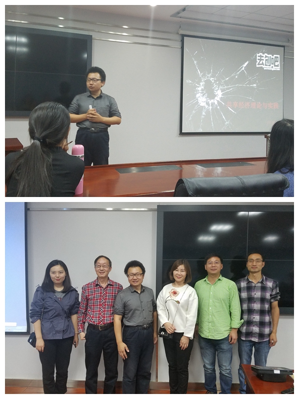 10月20日下午2:30,著名文化创意学者、湖北省第一批国家级创新型孵化器去创吧传播公司创始人严重捷应邀来到我院,在文管楼金融实验室为经管院师生作了题为《共享经济理论与实践》的学术讲座,此次学术讲座由经济与管理学院顾桥教授主持,参加讲座的还有程英等老师以及经济与管理学院研究生。